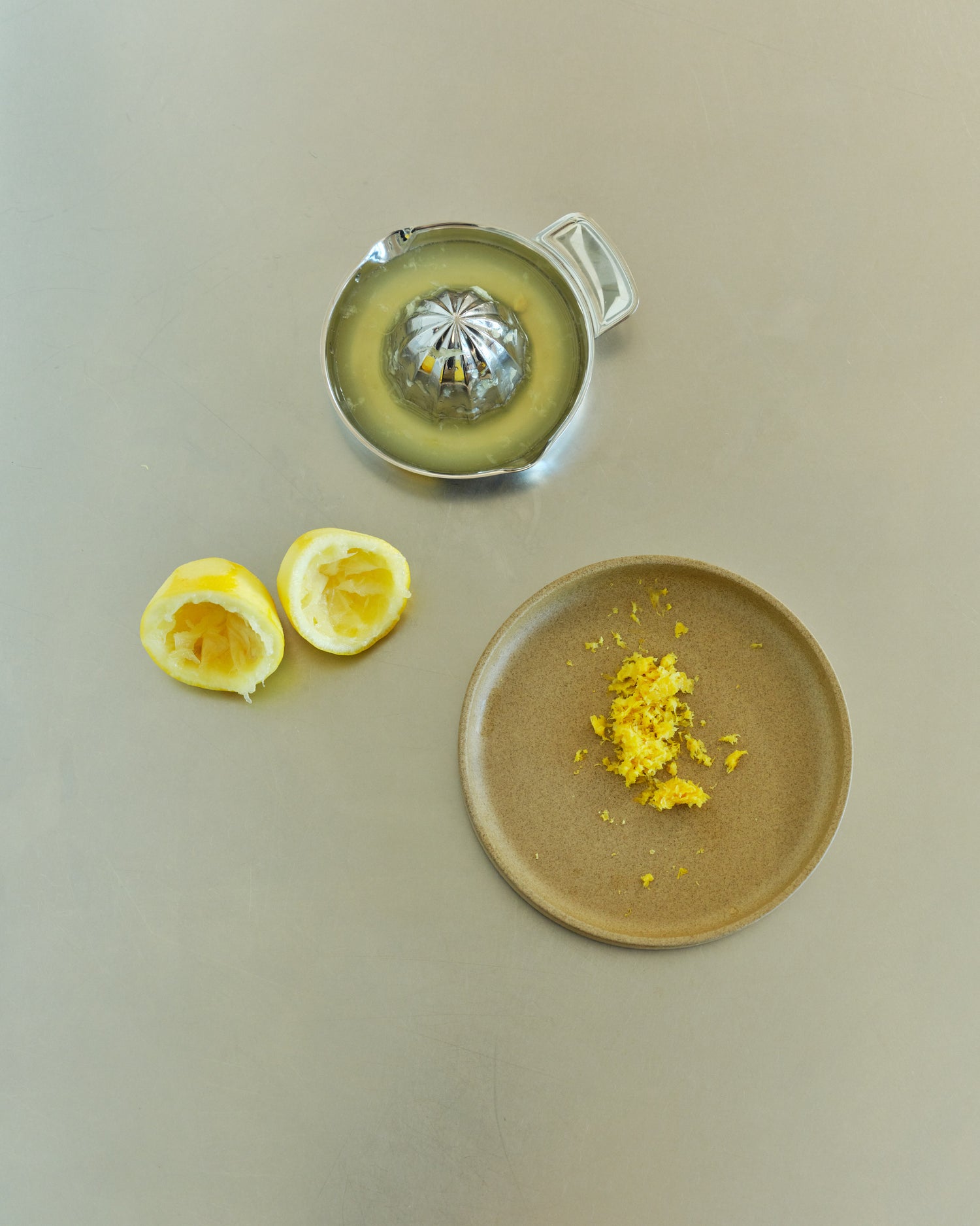 Press dann die Zitrone aus. Gib den Saft und die Schale in eine große Schale.