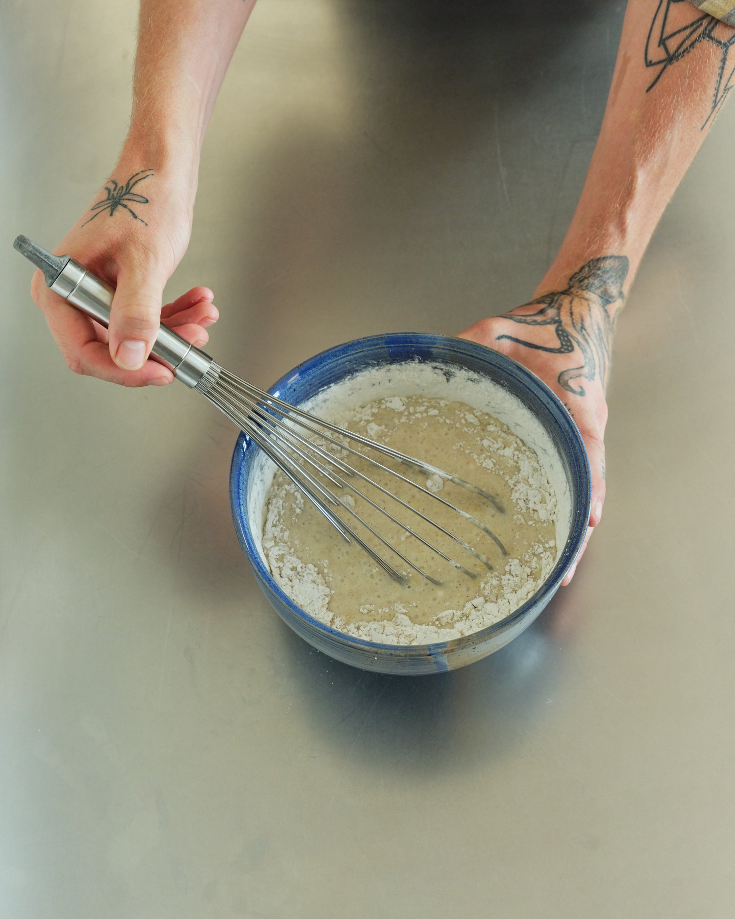 Kipp die Basis in die Schüssel dazu und vermische alle miteinander